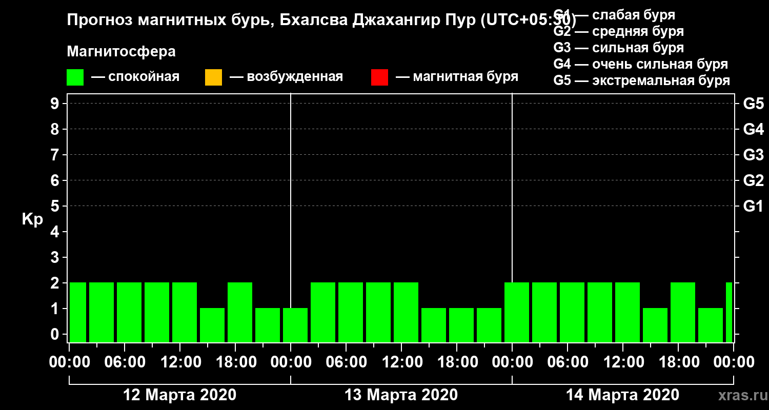 Прогноз магнитных бурь в Бхалсва Джахангир Пуре — 12 марта 2020 года