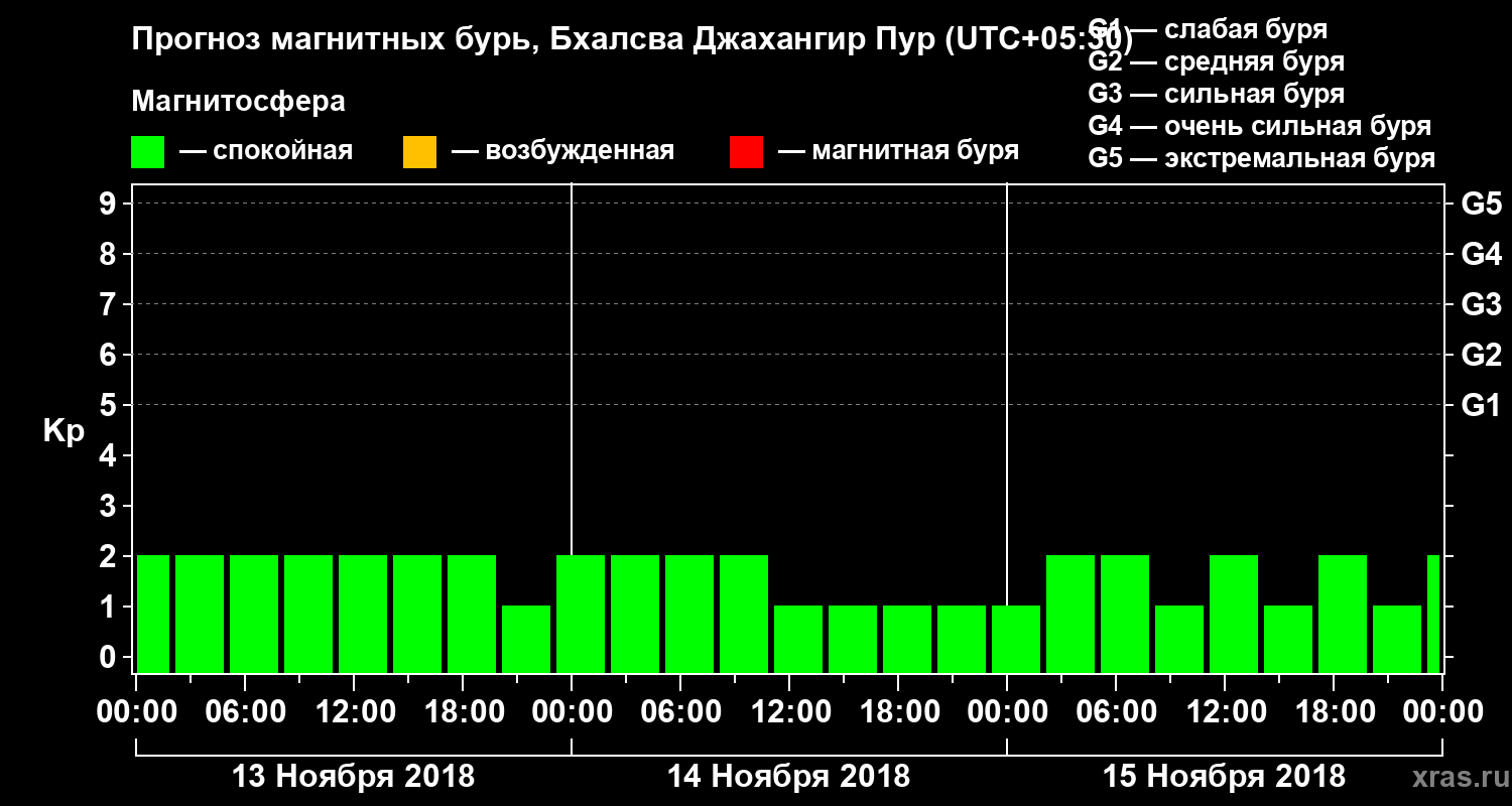 Прогноз магнитных бурь в Бхалсва Джахангир Пуре — 13 ноября 2018 года