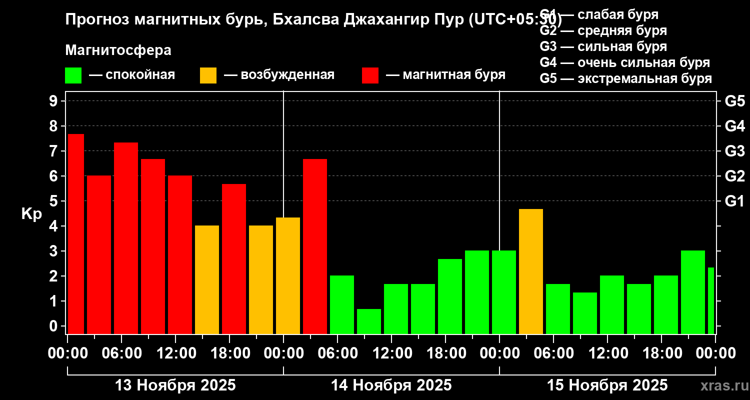 Прогноз магнитных бурь в Бхалсва Джахангир Пуре — 13 ноября 2025 года