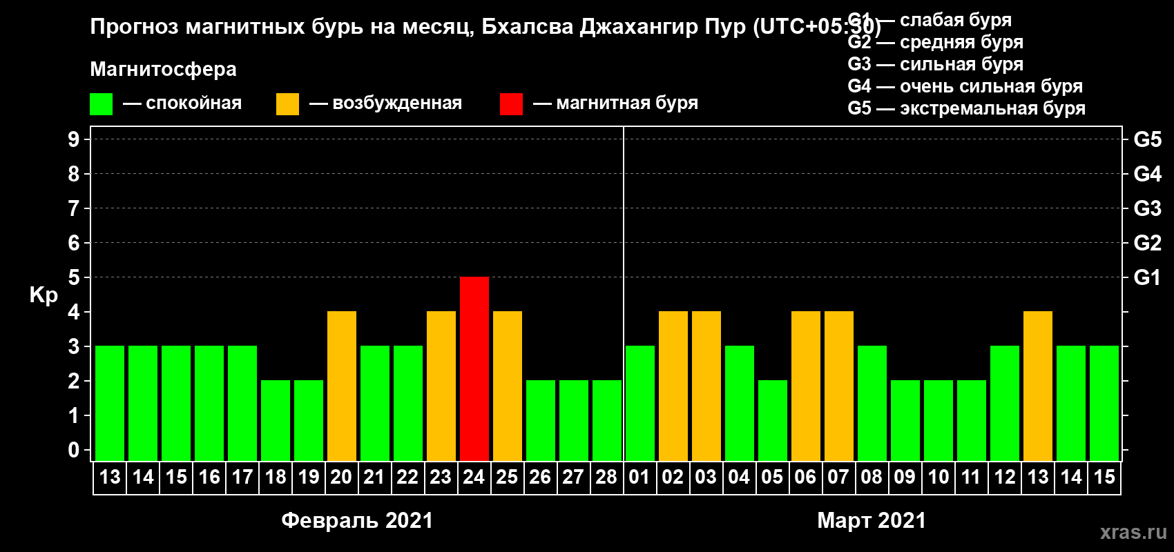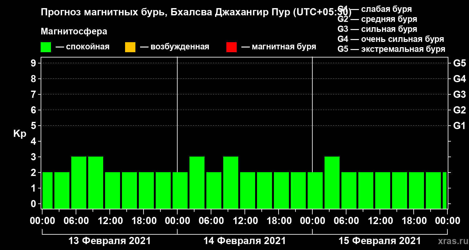 Прогноз магнитных бурь в Бхалсва Джахангир Пуре — 13 февраля 2021 года