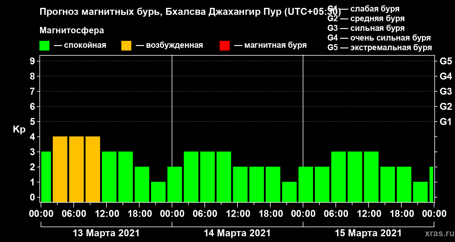 Прогноз магнитных бурь в Бхалсва Джахангир Пуре — 13 марта 2021 года