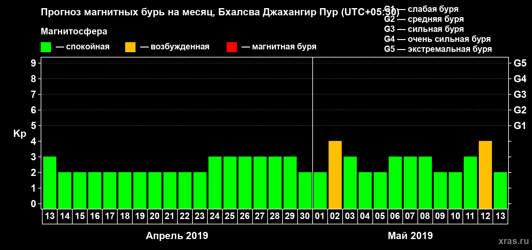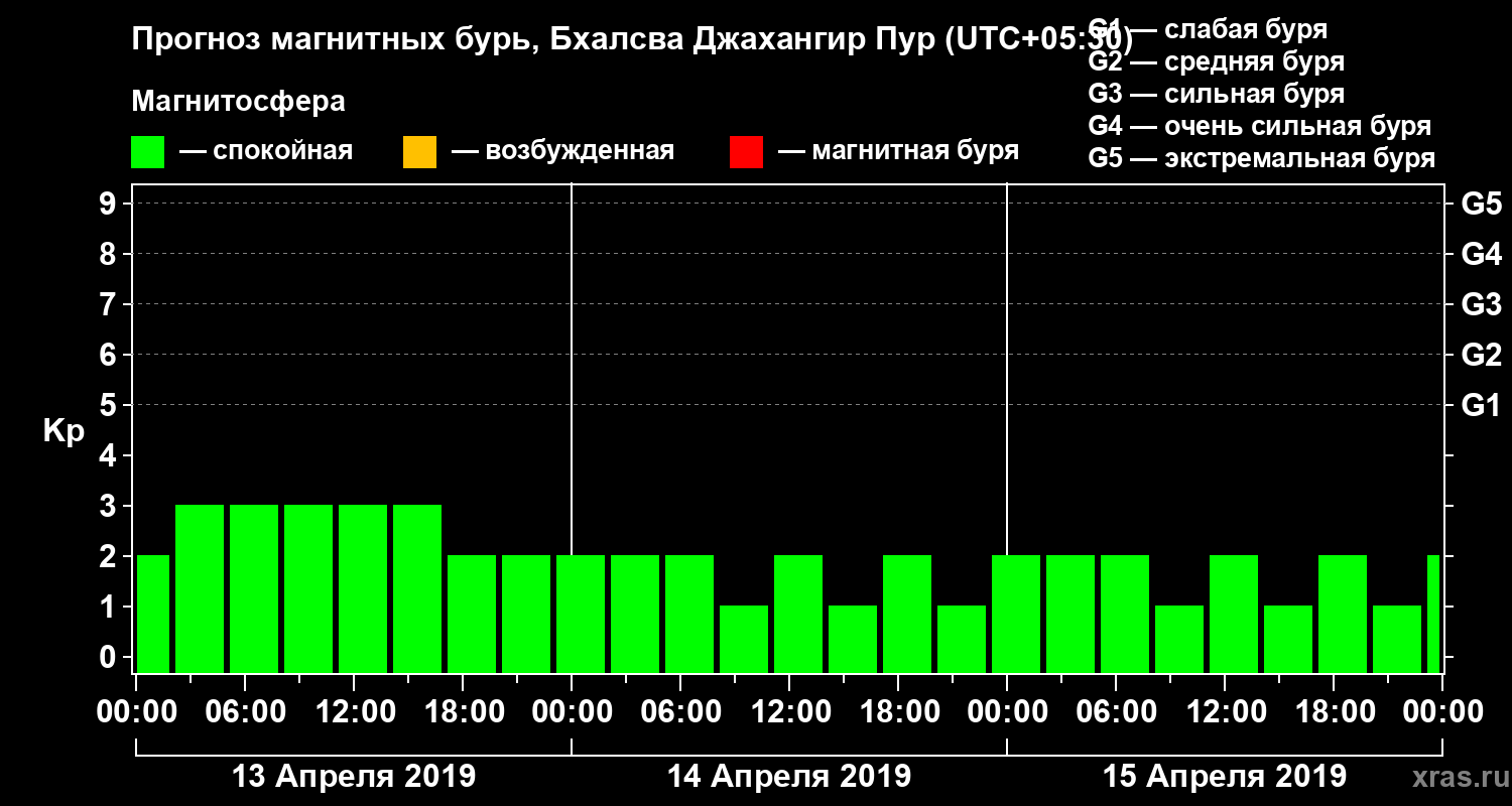 Прогноз магнитных бурь в Бхалсва Джахангир Пуре — 13 апреля 2019 года