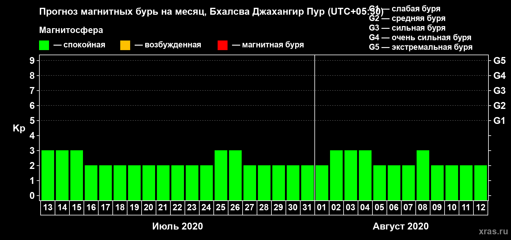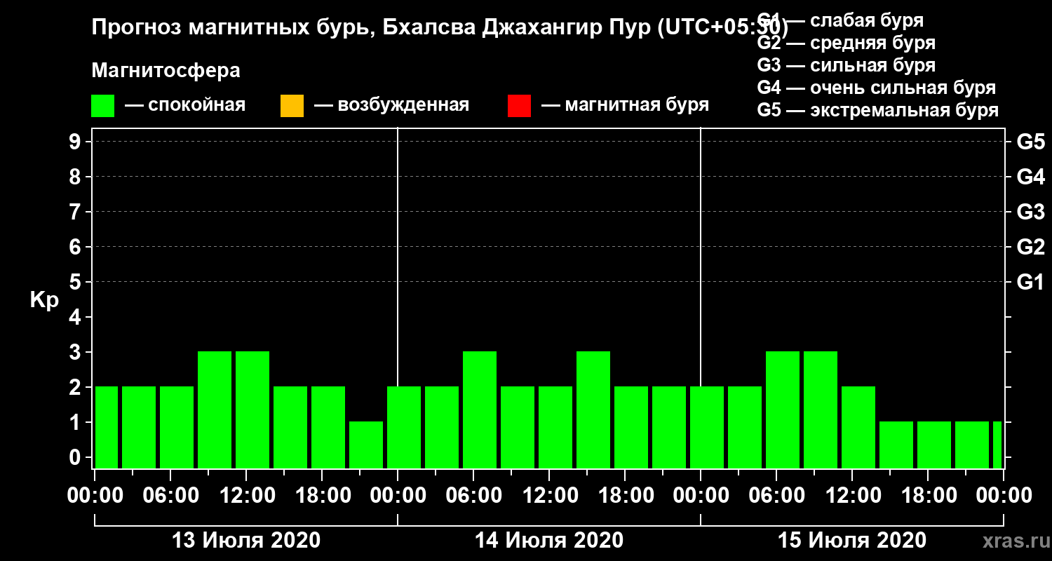 Прогноз магнитных бурь в Бхалсва Джахангир Пуре на 13 июля 2020 года