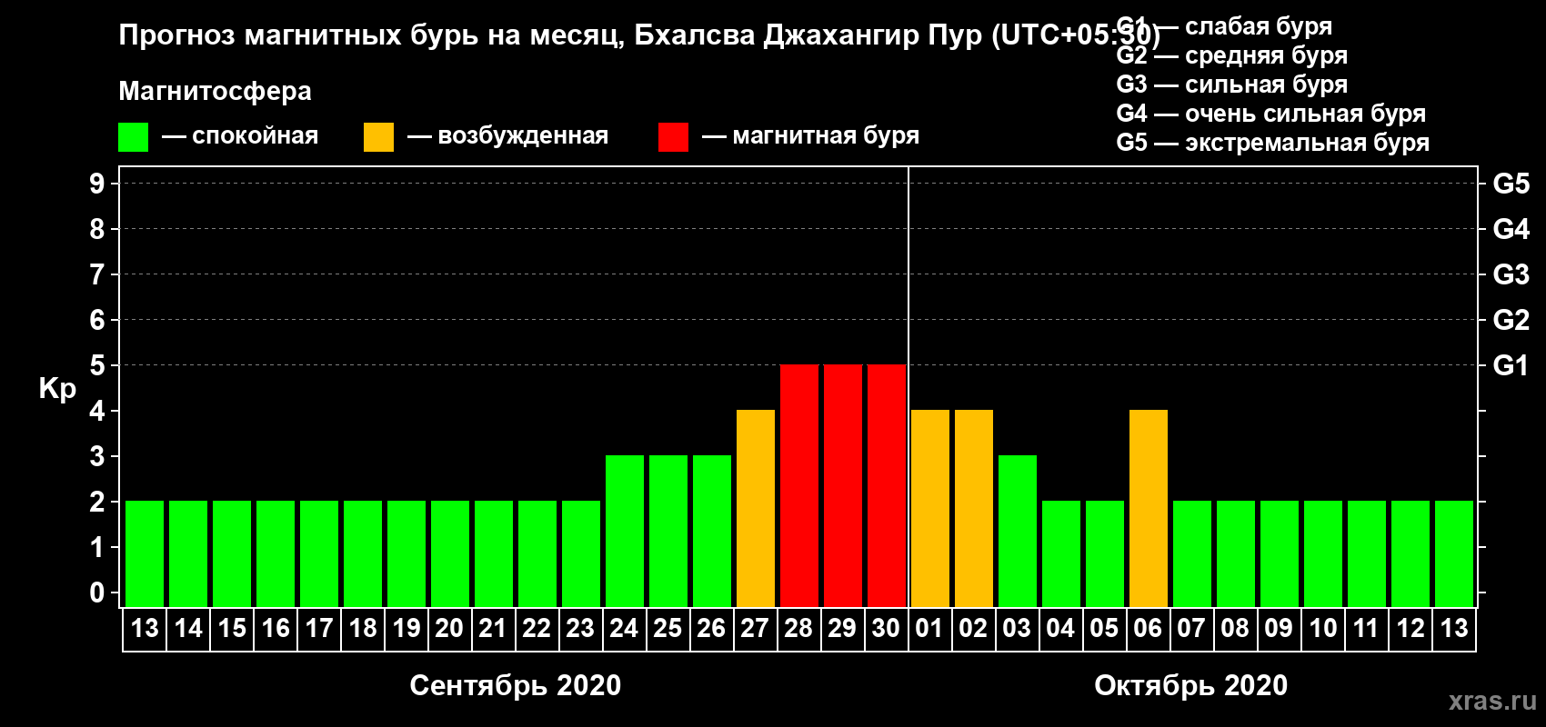 Прогноз магнитных бурь в Бхалсва Джахангир Пуре — 13 сентября 2020 года