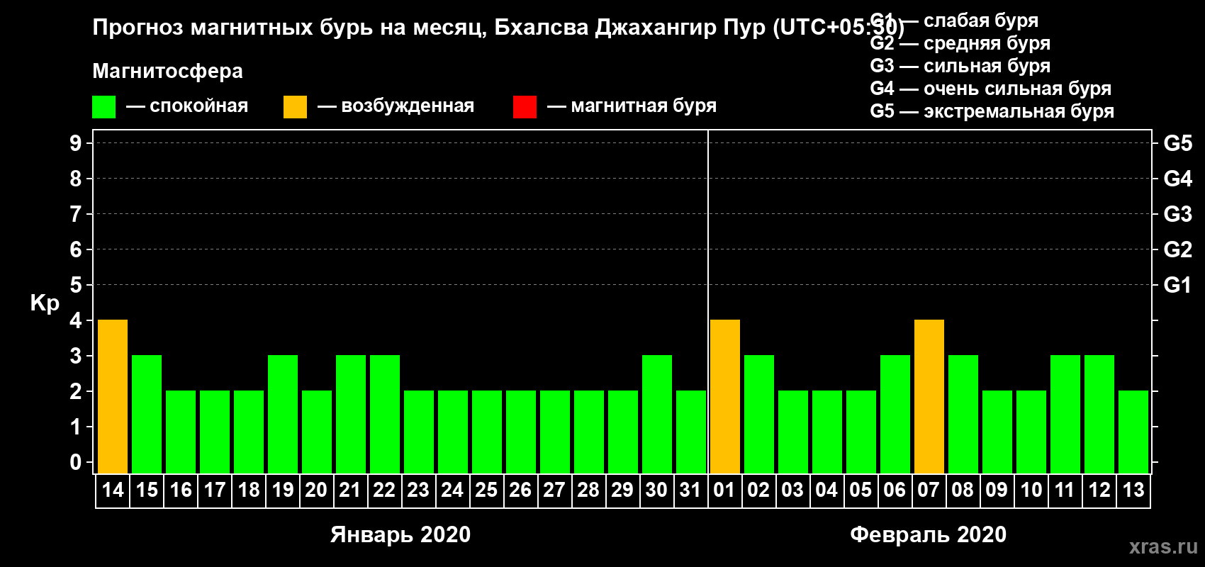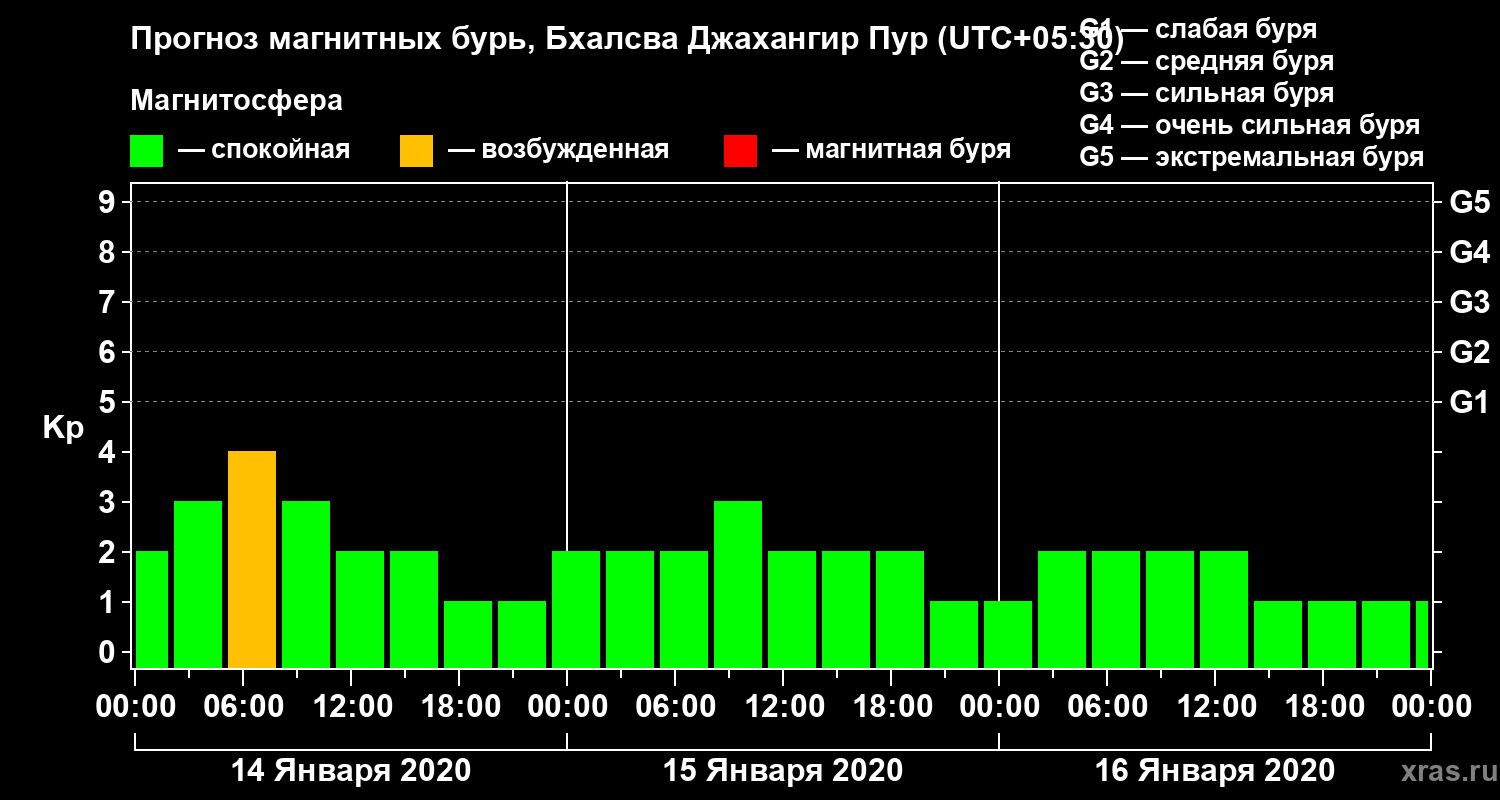 Прогноз магнитных бурь в Бхалсва Джахангир Пуре — 14 января 2020 года