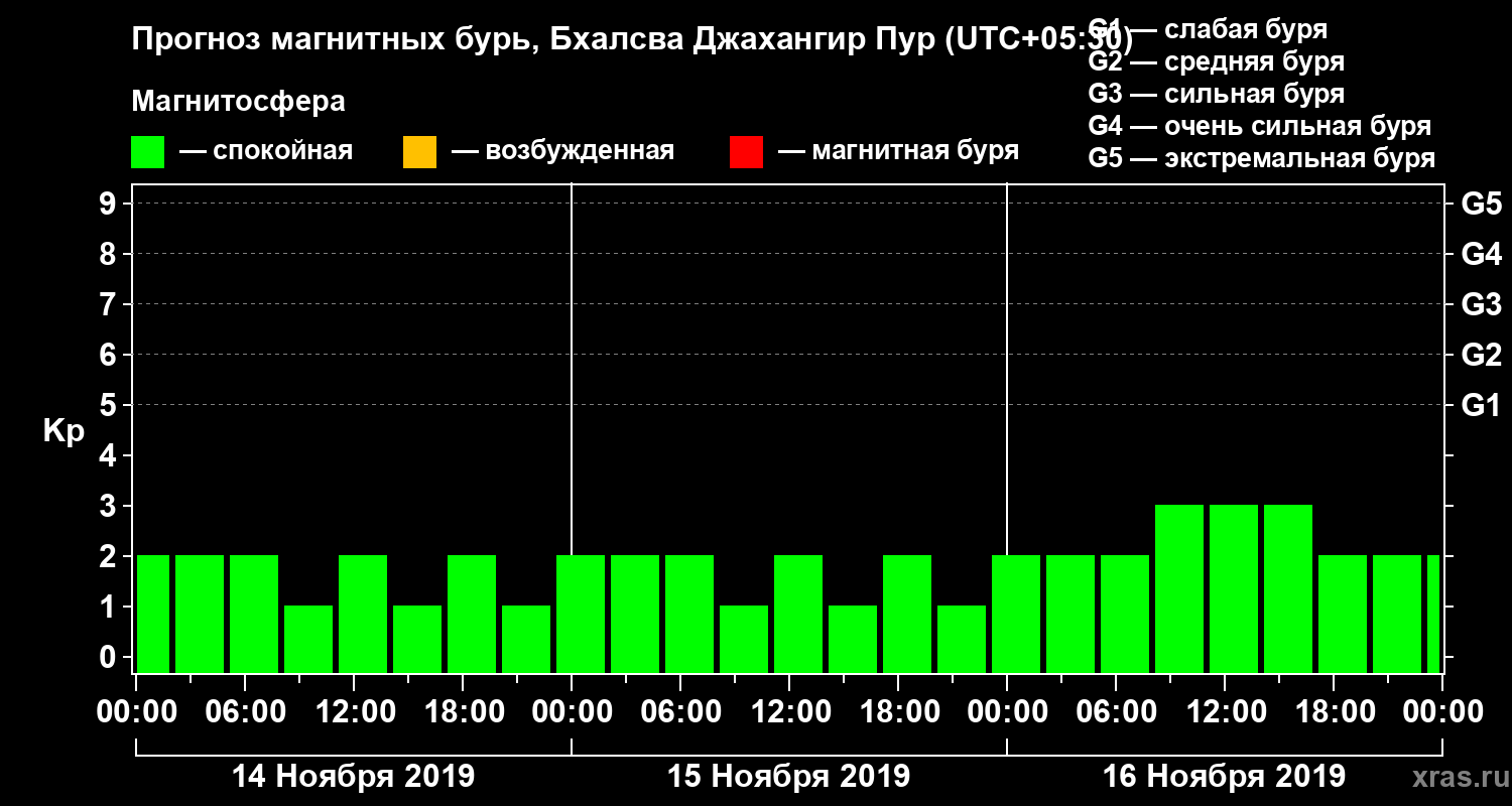 Прогноз магнитных бурь в Бхалсва Джахангир Пуре — 14 ноября 2019 года