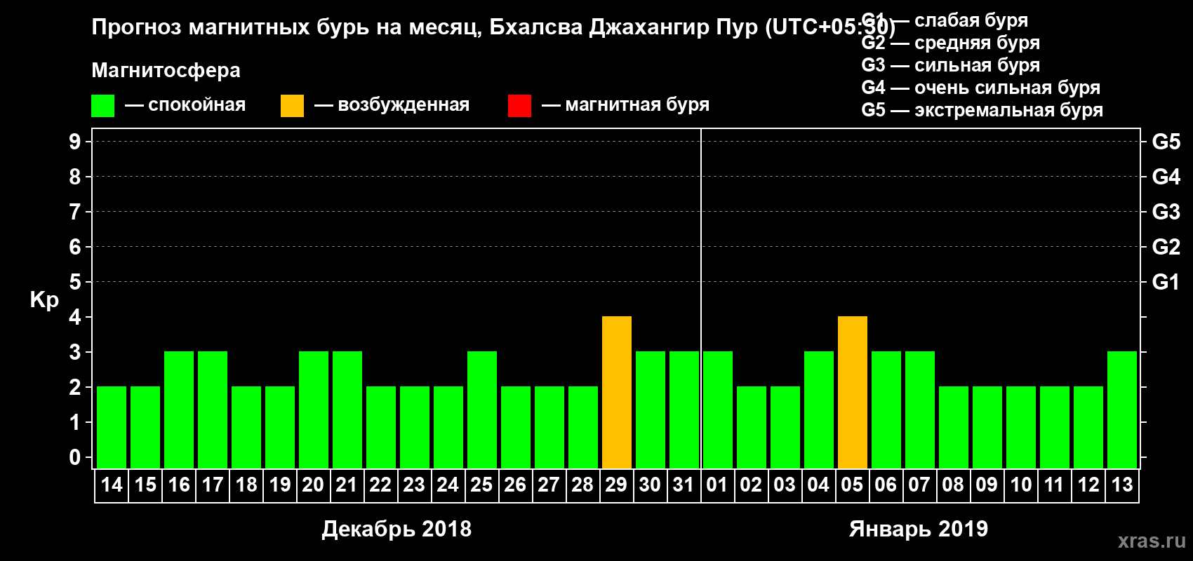 Прогноз магнитных бурь в Бхалсва Джахангир Пуре — 14 декабря 2018 года