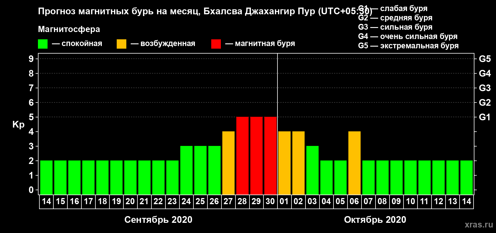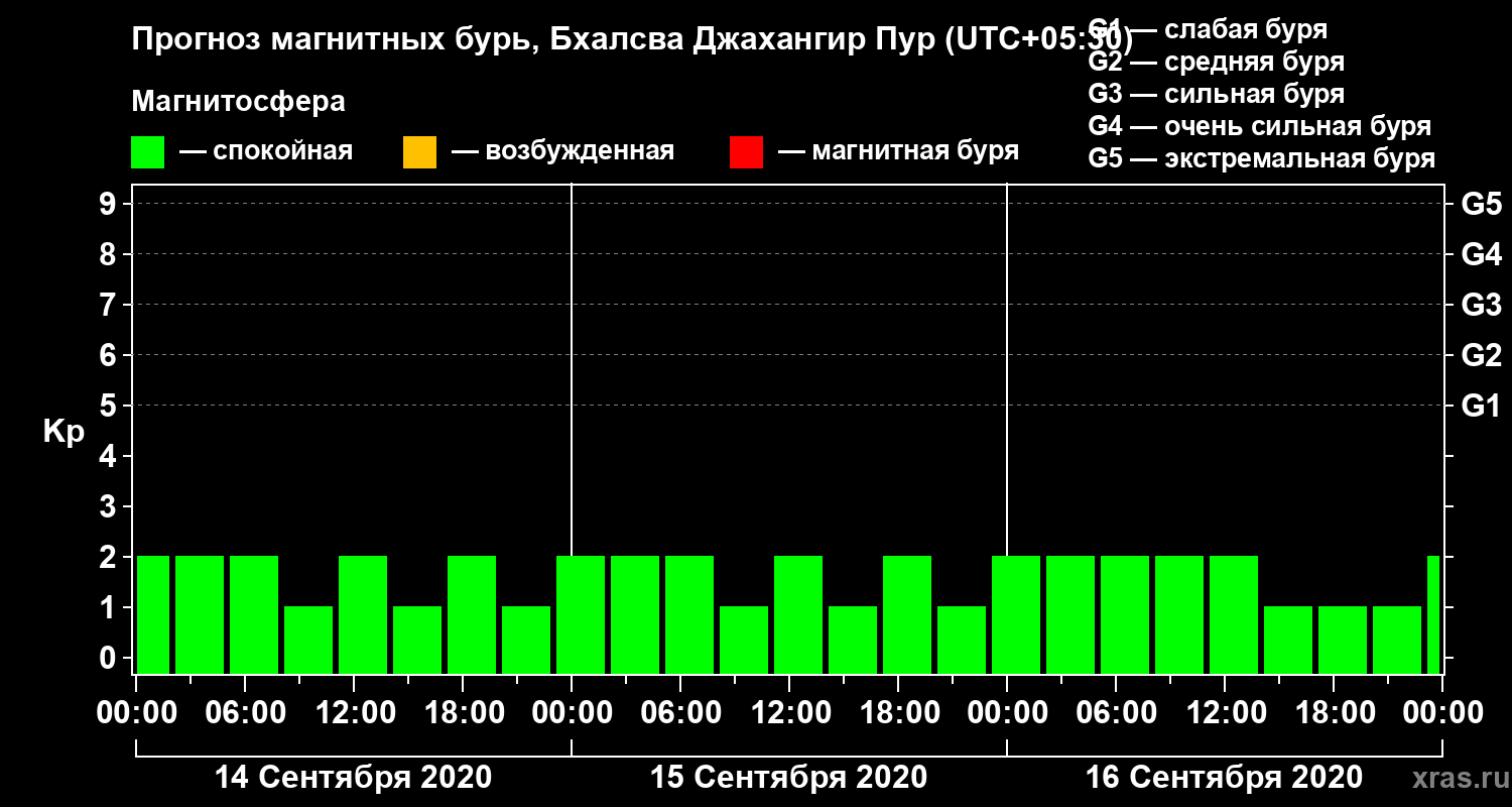 Прогноз магнитных бурь в Бхалсва Джахангир Пуре — 14 сентября 2020 года