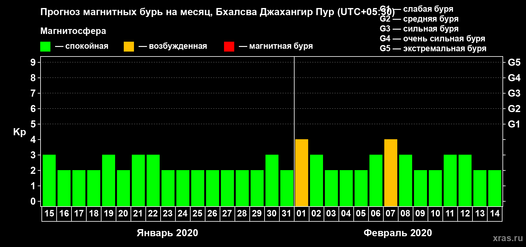 Прогноз магнитных бурь в Бхалсва Джахангир Пуре — 15 января 2020 года