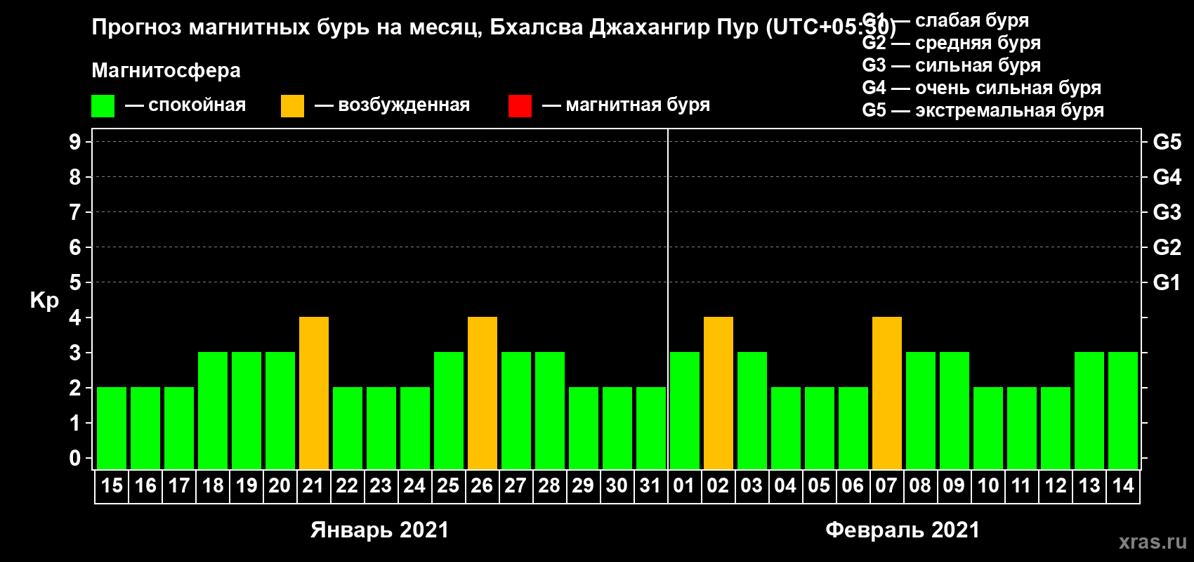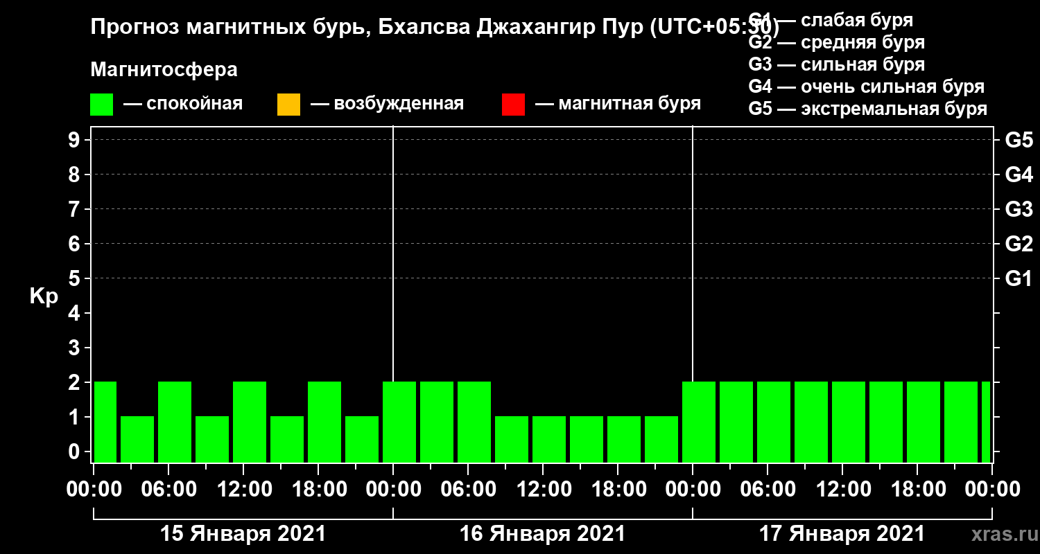 Прогноз магнитных бурь в Бхалсва Джахангир Пуре — 15 января 2021 года