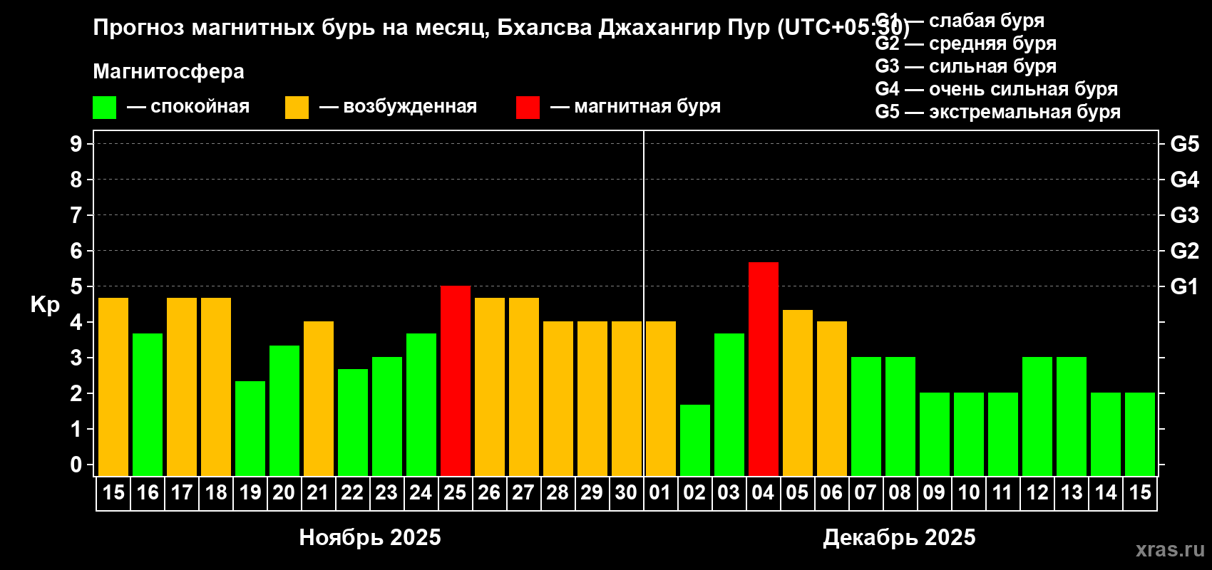 Прогноз магнитных бурь в Бхалсва Джахангир Пуре — 15 ноября 2025 года
