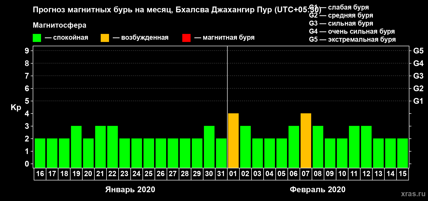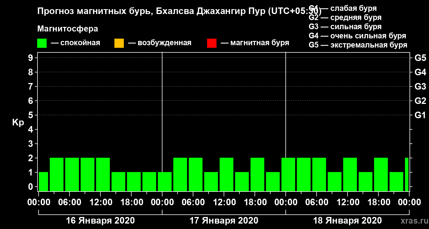 Прогноз магнитных бурь в Бхалсва Джахангир Пуре — 16 января 2020 года