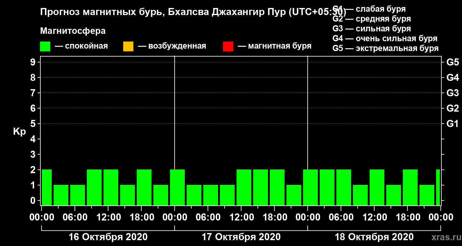 Прогноз магнитных бурь в Бхалсва Джахангир Пуре — 16 октября 2020 года