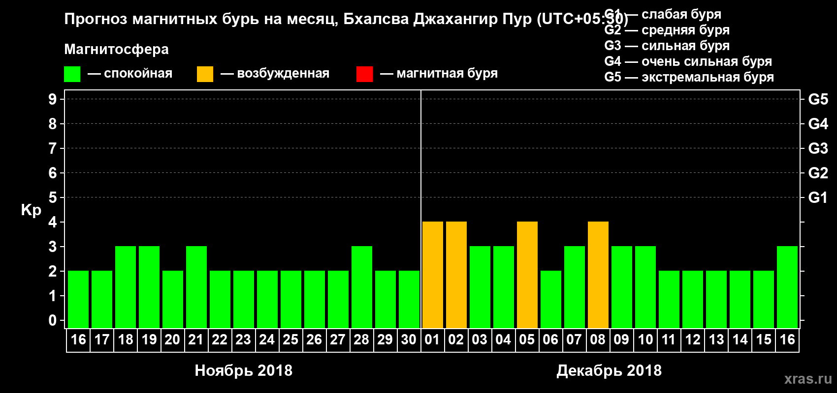 Прогноз магнитных бурь в Бхалсва Джахангир Пуре — 16 ноября 2018 года