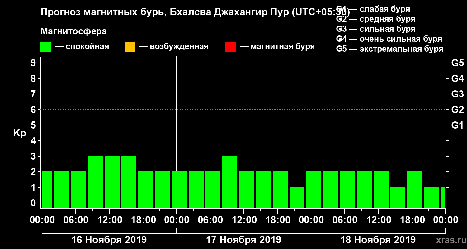Прогноз магнитных бурь в Бхалсва Джахангир Пуре — 16 ноября 2019 года