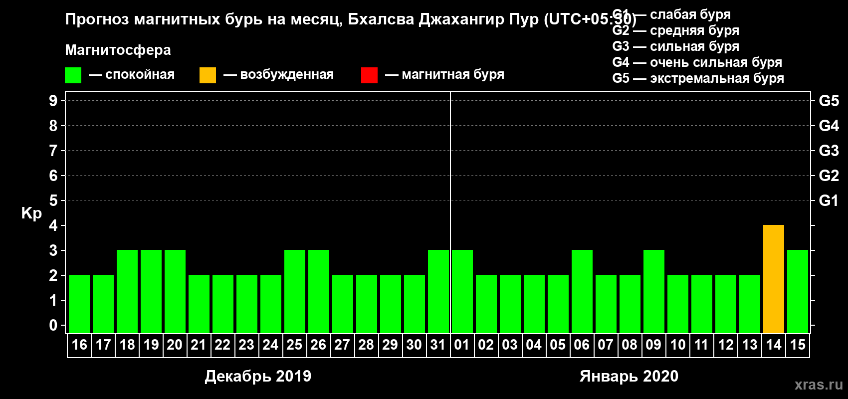 Прогноз магнитных бурь в Бхалсва Джахангир Пуре — 16 декабря 2019 года