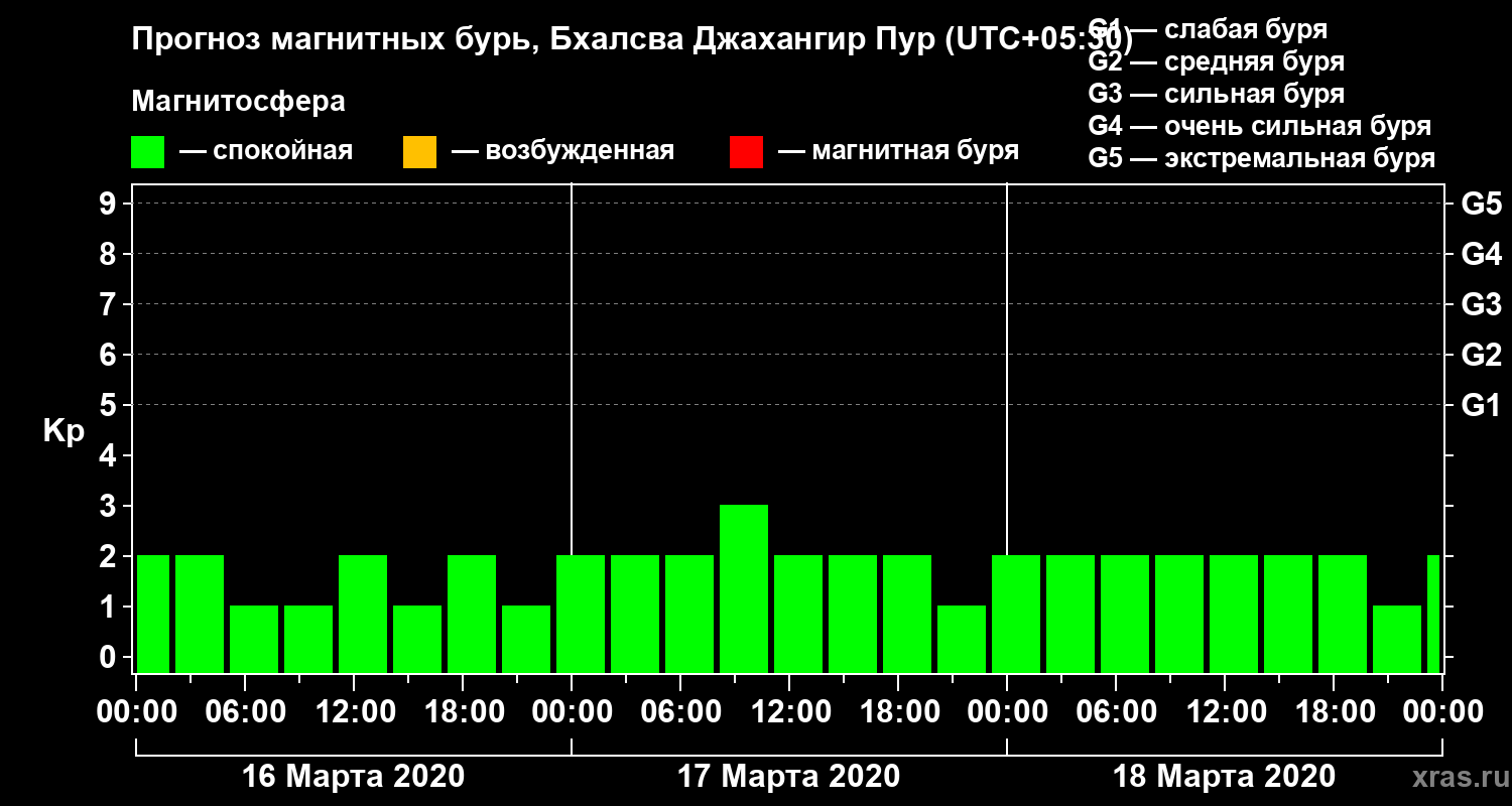 Прогноз магнитных бурь в Бхалсва Джахангир Пуре — 16 марта 2020 года