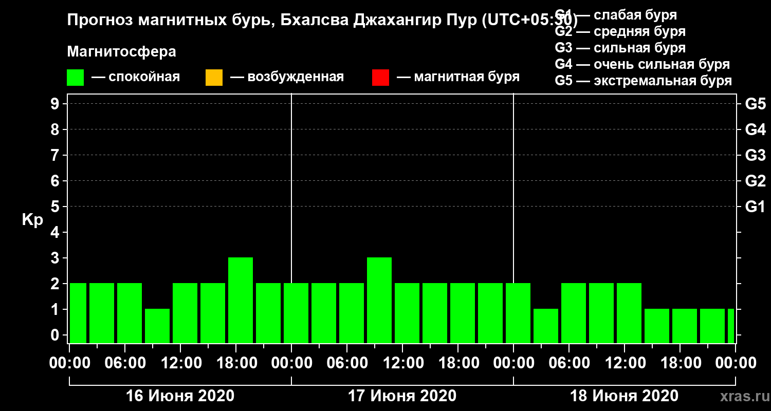 Прогноз магнитных бурь в Бхалсва Джахангир Пуре — 16 июня 2020 года