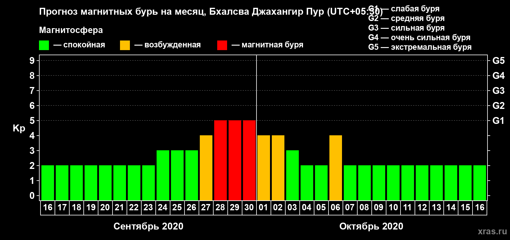 Прогноз магнитных бурь в Бхалсва Джахангир Пуре — 16 сентября 2020 года