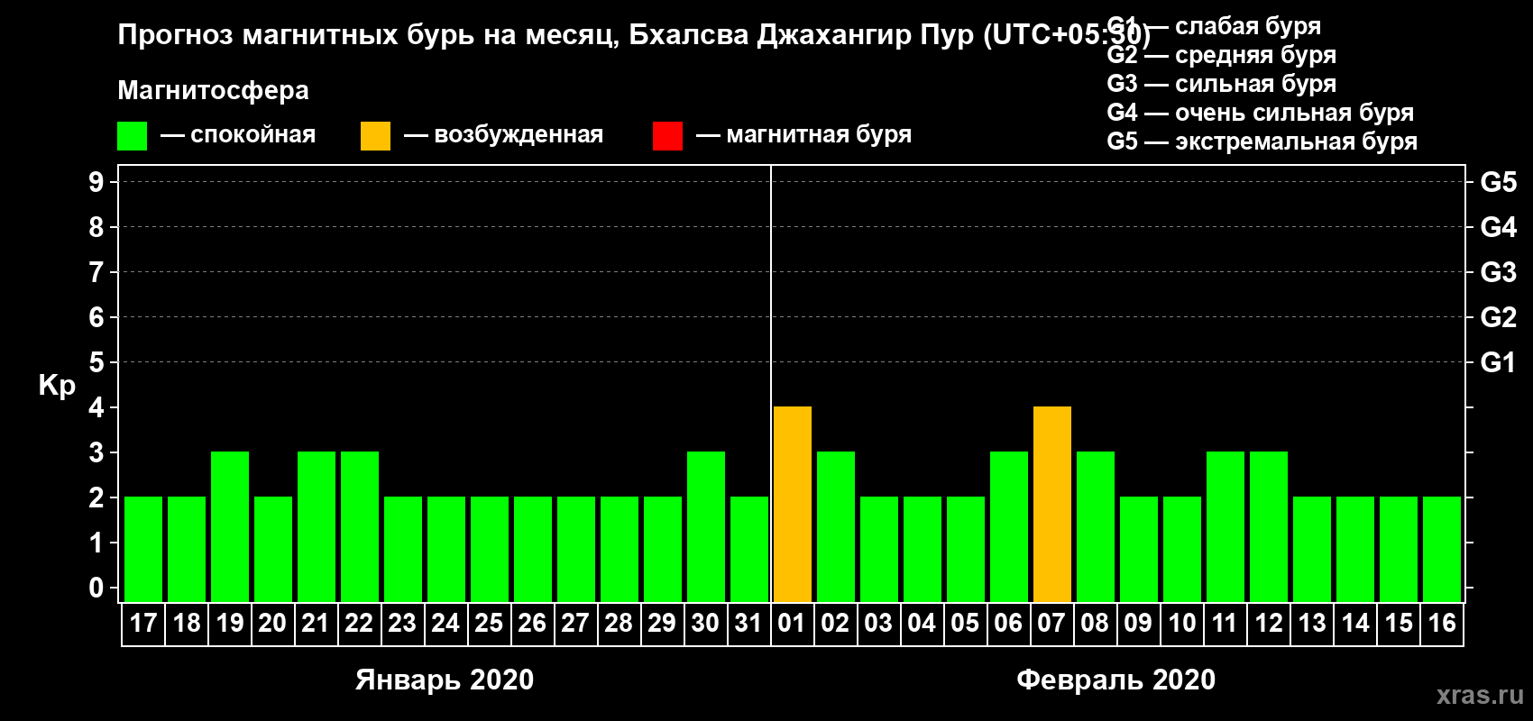 Прогноз магнитных бурь в Бхалсва Джахангир Пуре — 17 января 2020 года
