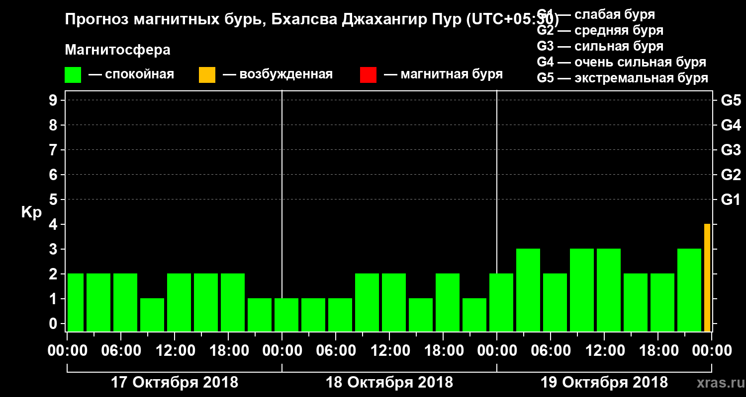 Прогноз магнитных бурь в Бхалсва Джахангир Пуре — 17 октября 2018 года