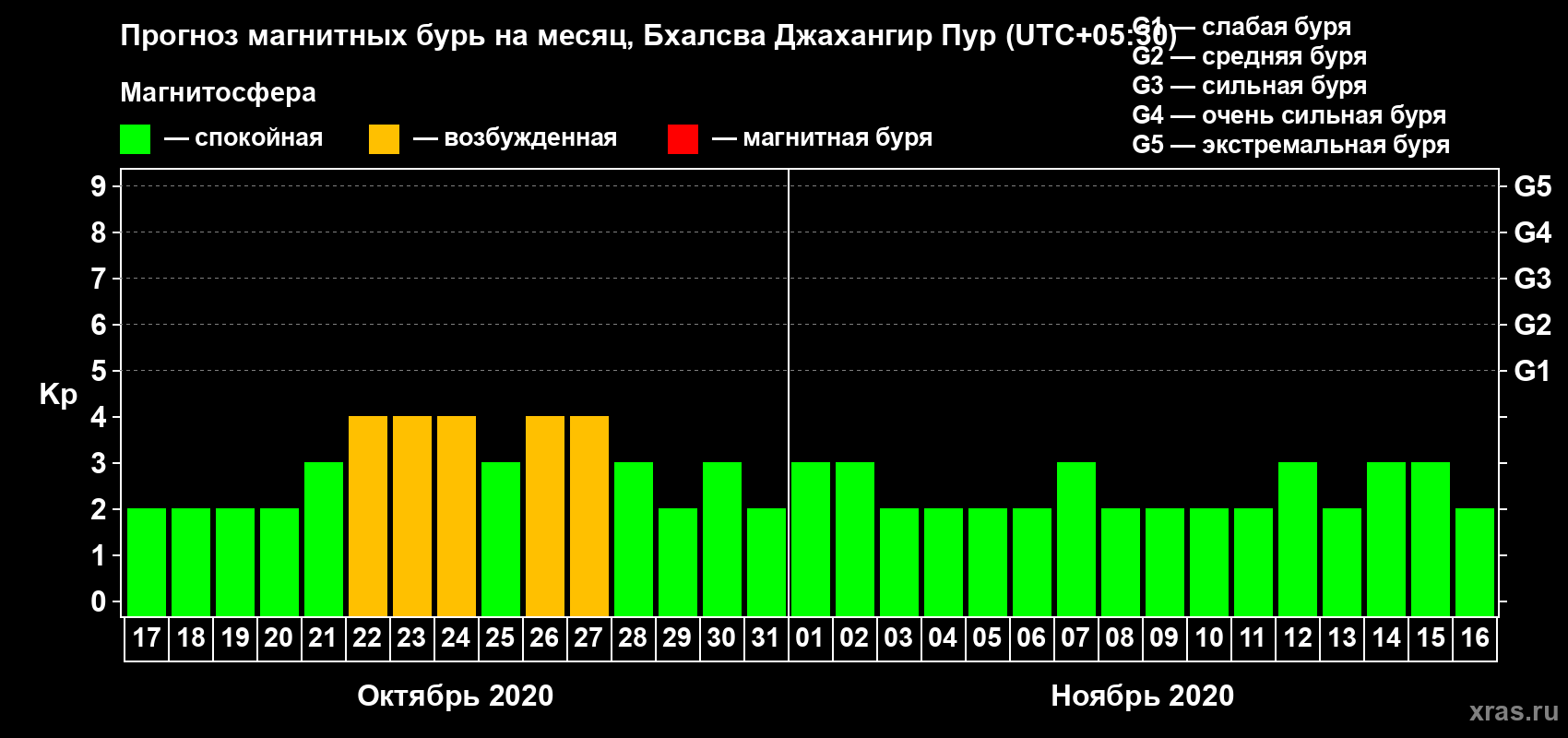 Прогноз магнитных бурь в Бхалсва Джахангир Пуре — 17 октября 2020 года