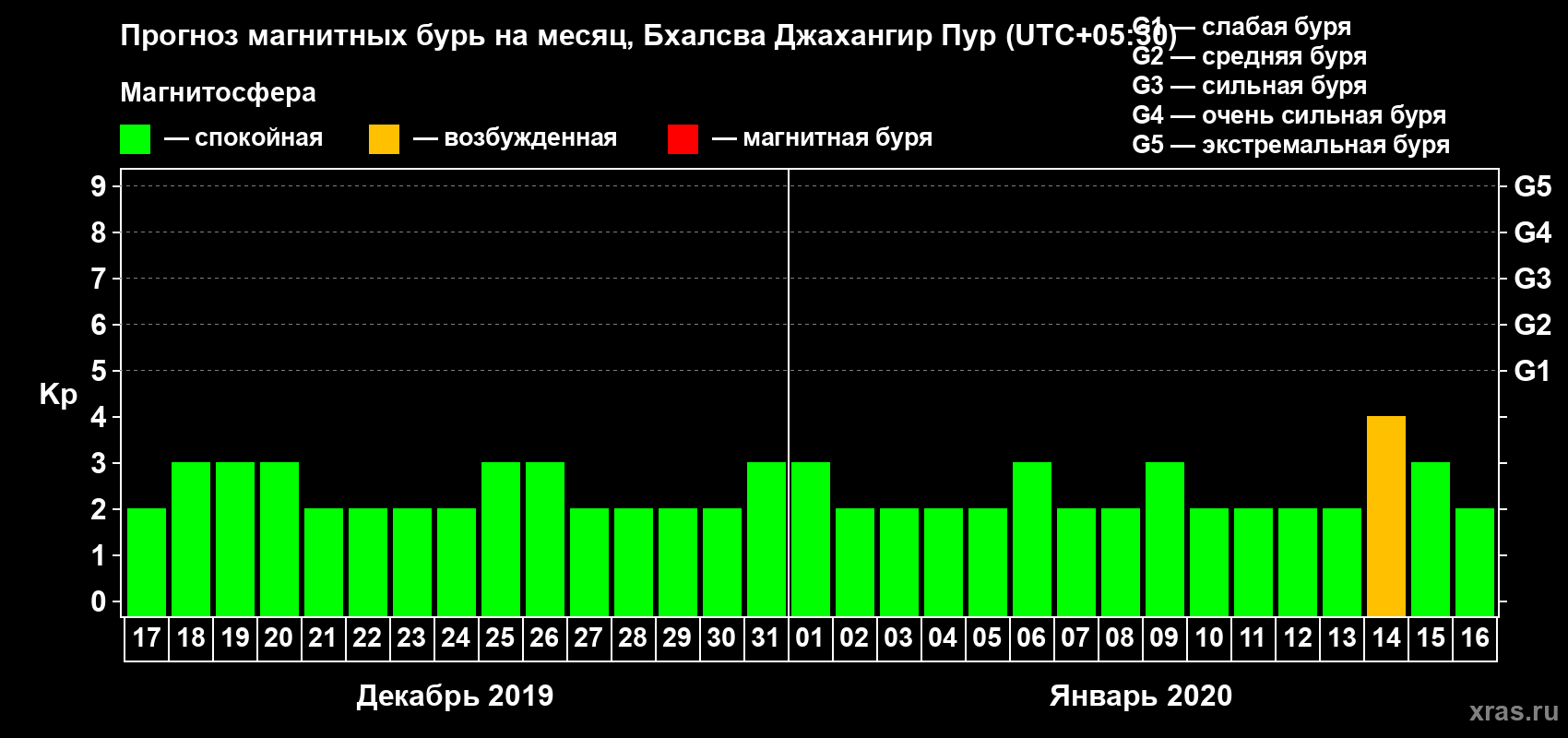 Прогноз магнитных бурь в Бхалсва Джахангир Пуре — 17 декабря 2019 года