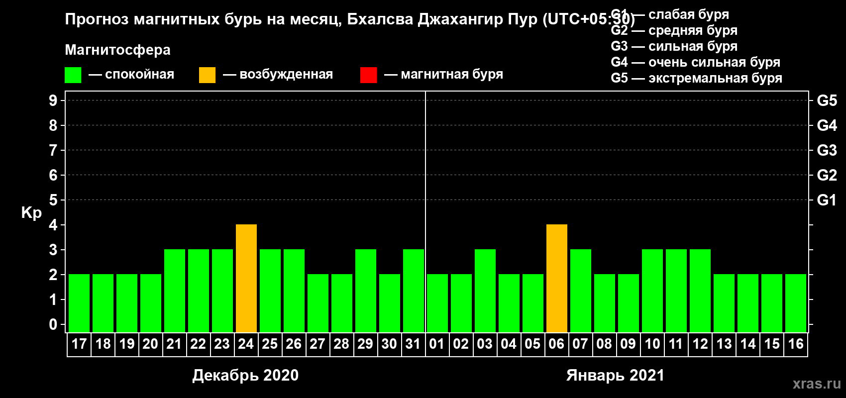 Прогноз магнитных бурь в Бхалсва Джахангир Пуре — 17 декабря 2020 года
