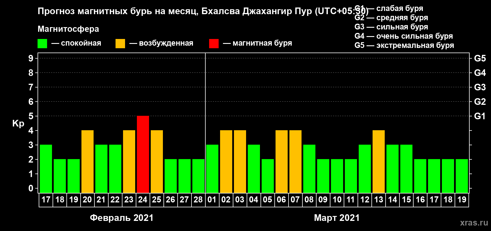 Прогноз магнитных бурь в Бхалсва Джахангир Пуре — 17 февраля 2021 года