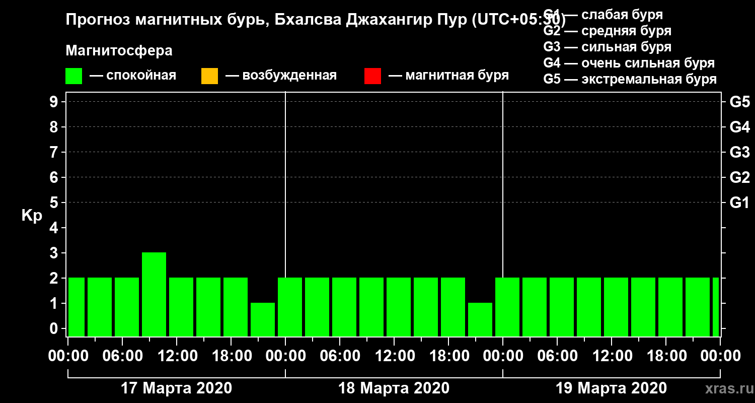 Прогноз магнитных бурь в Бхалсва Джахангир Пуре — 17 марта 2020 года