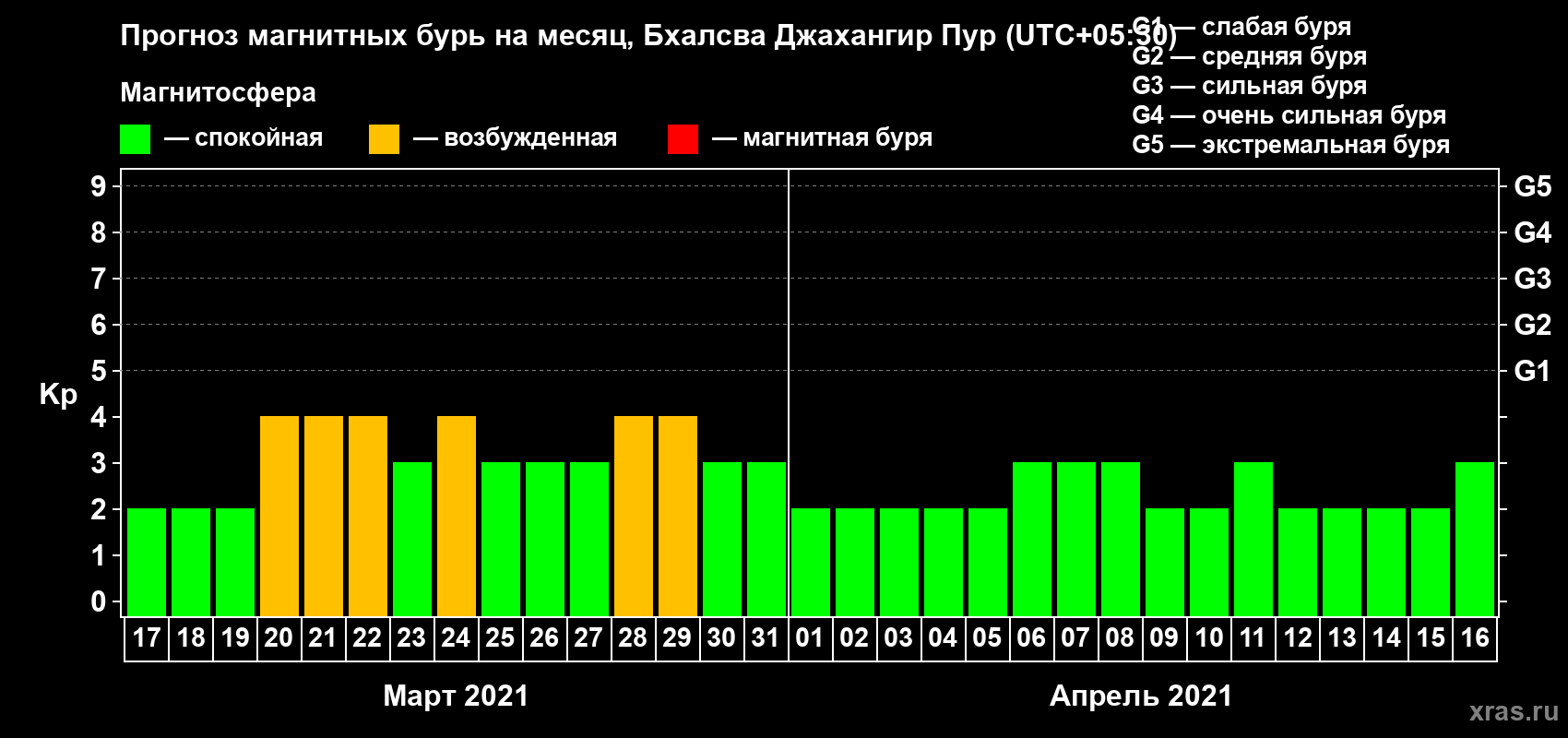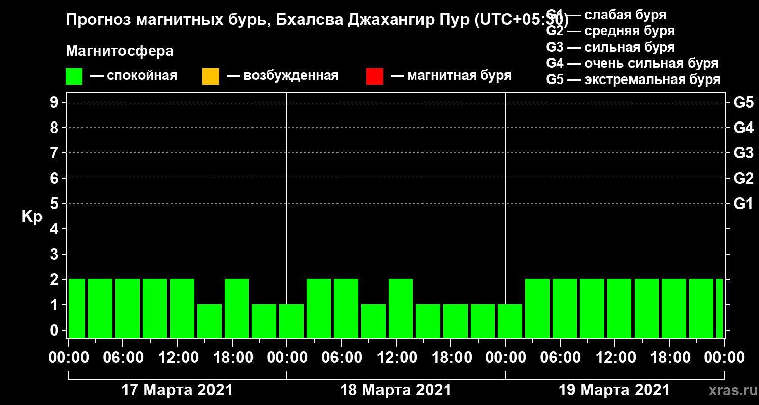 Прогноз магнитных бурь в Бхалсва Джахангир Пуре — 17 марта 2021 года