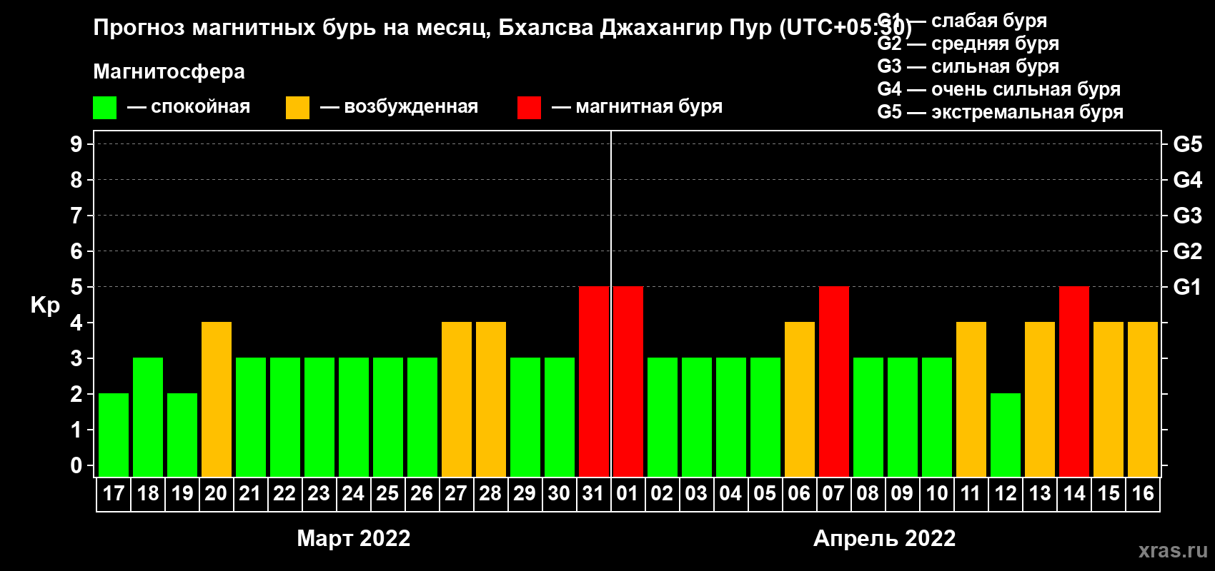 Прогноз магнитных бурь в Бхалсва Джахангир Пуре — 17 марта 2022 года