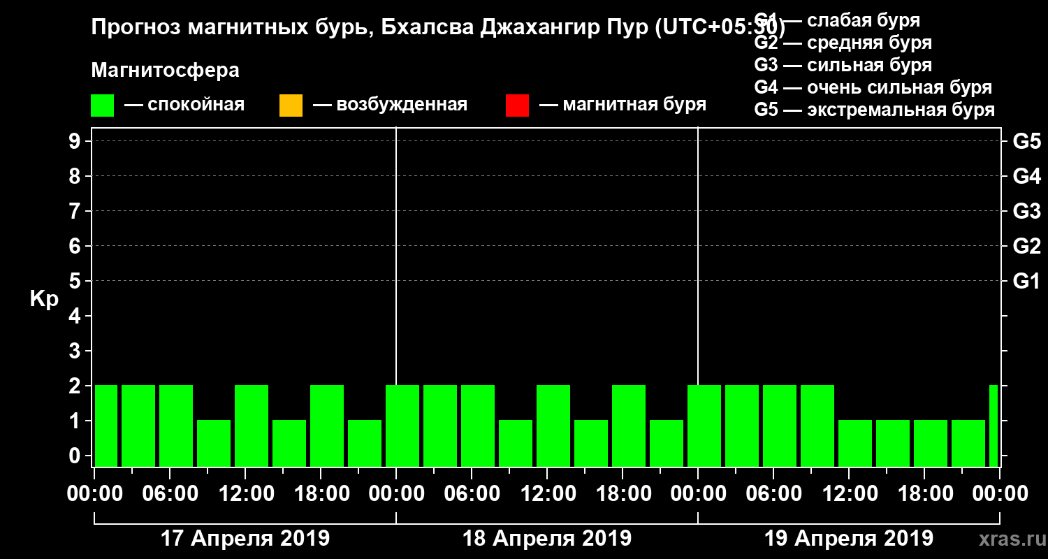 Прогноз магнитных бурь в Бхалсва Джахангир Пуре — 17 апреля 2019 года