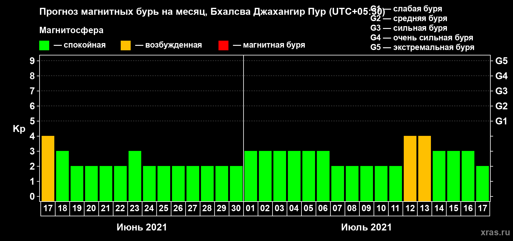 Прогноз магнитных бурь в Бхалсва Джахангир Пуре — 17 июня 2021 года