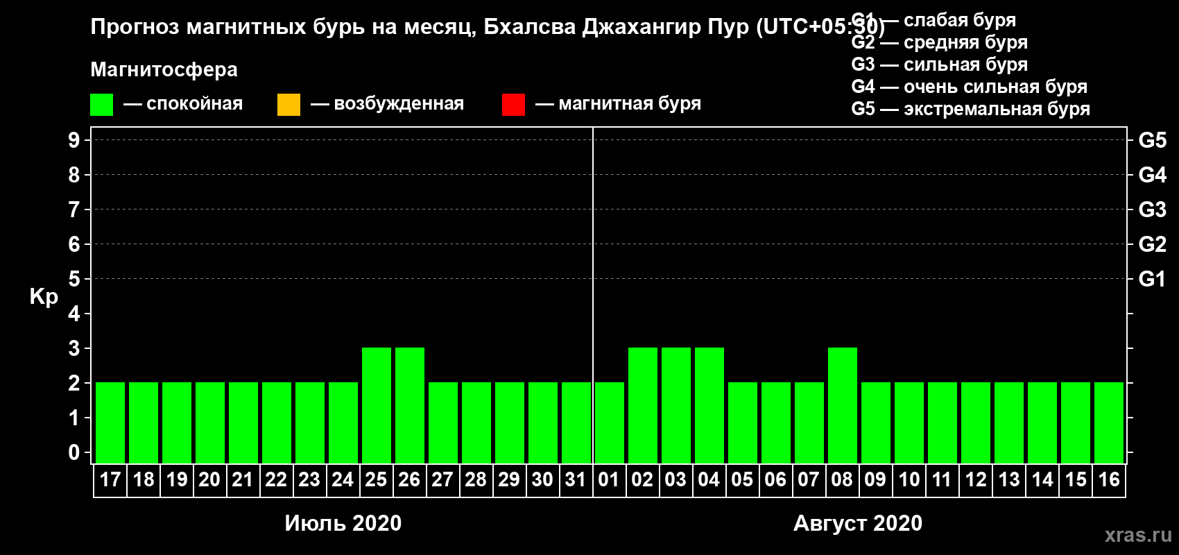 Прогноз магнитных бурь в Бхалсва Джахангир Пуре — 17 июля 2020 года