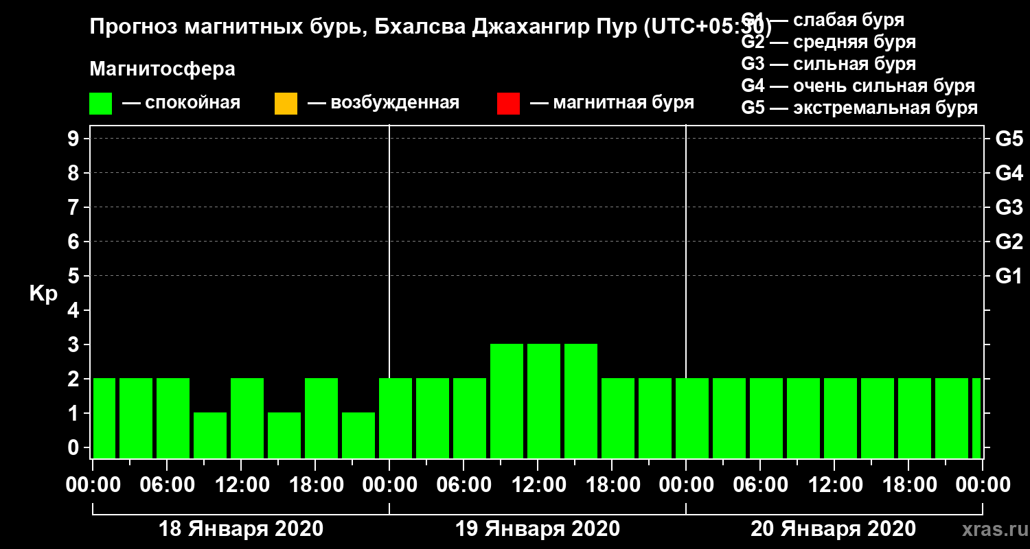 Прогноз магнитных бурь в Бхалсва Джахангир Пуре — 18 января 2020 года