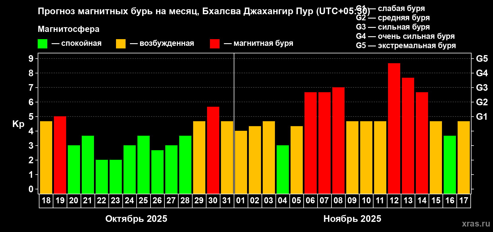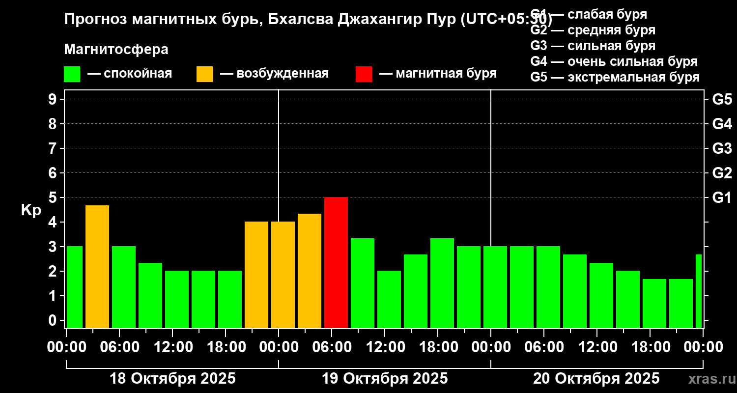 Прогноз магнитных бурь в Бхалсва Джахангир Пуре — 18 октября 2025 года