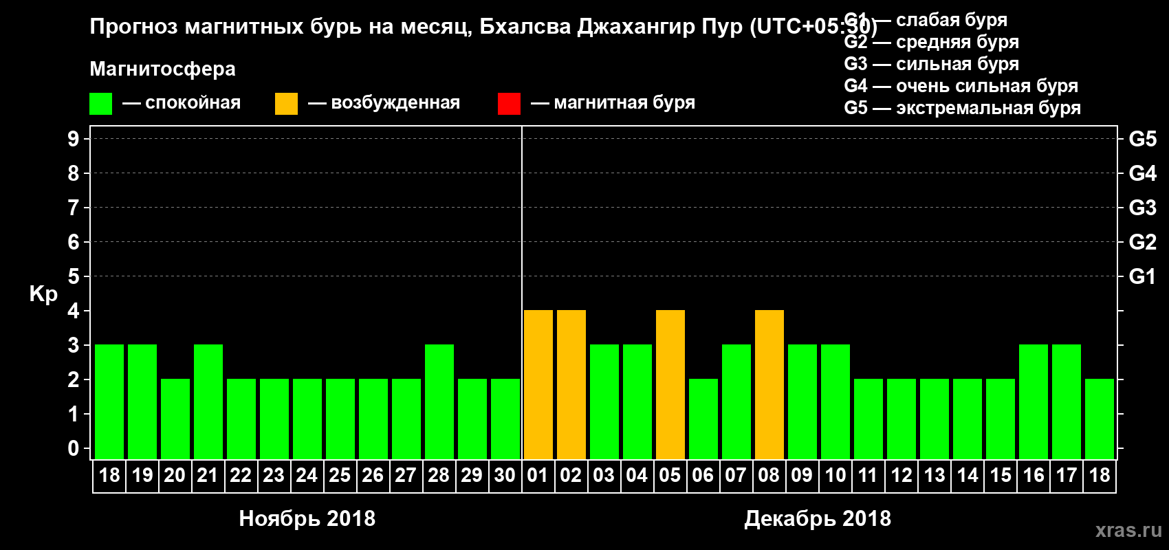 Прогноз магнитных бурь в Бхалсва Джахангир Пуре — 18 ноября 2018 года