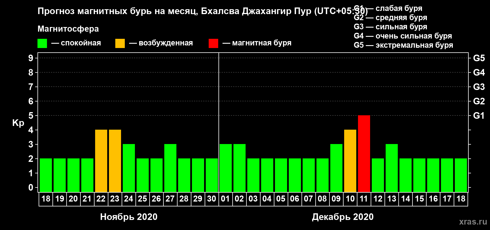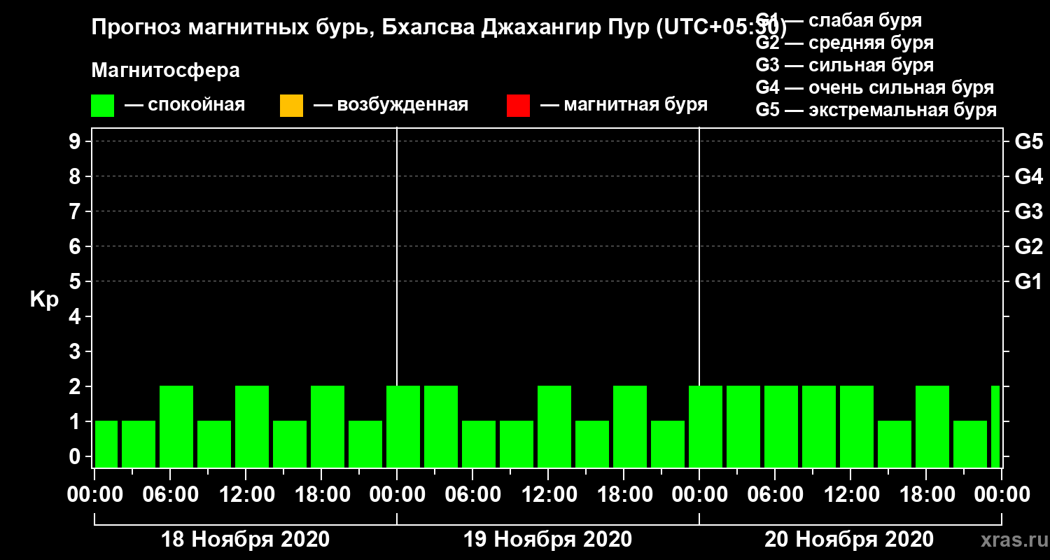 Прогноз магнитных бурь в Бхалсва Джахангир Пуре — 18 ноября 2020 года