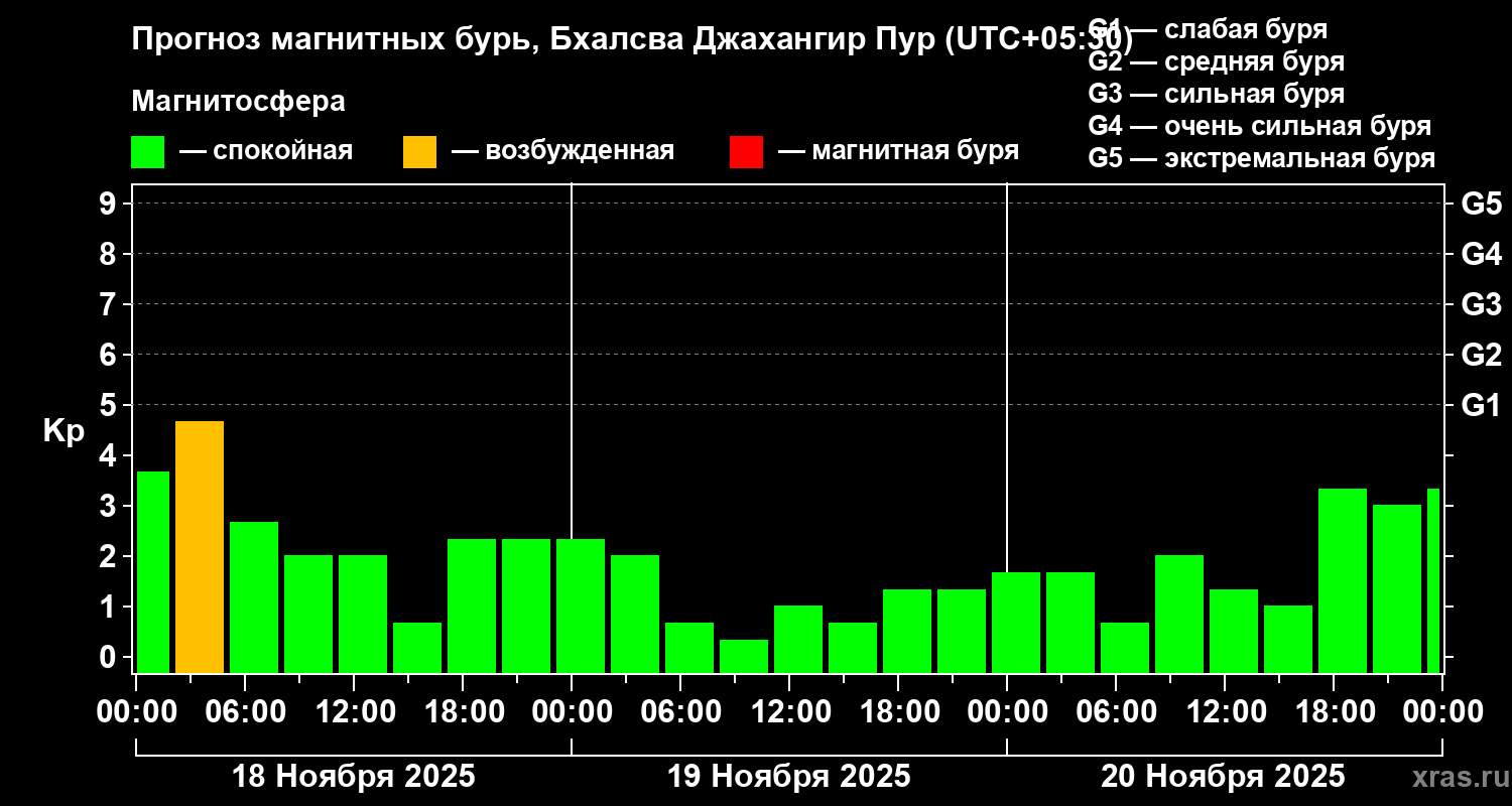 Прогноз магнитных бурь в Бхалсва Джахангир Пуре — 18 ноября 2025 года