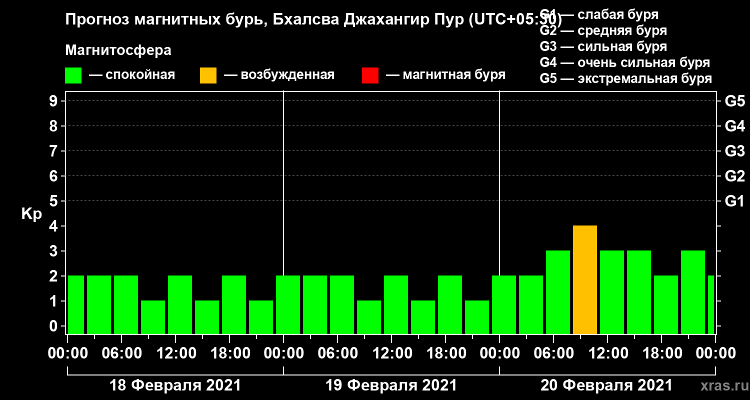 Прогноз магнитных бурь в Бхалсва Джахангир Пуре — 18 февраля 2021 года