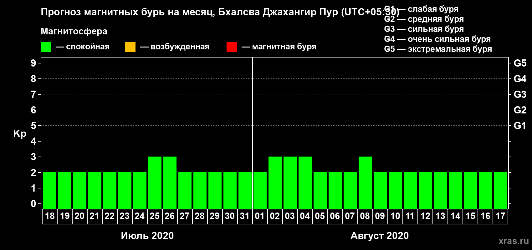 Прогноз магнитных бурь в Бхалсва Джахангир Пуре — 18 июля 2020 года