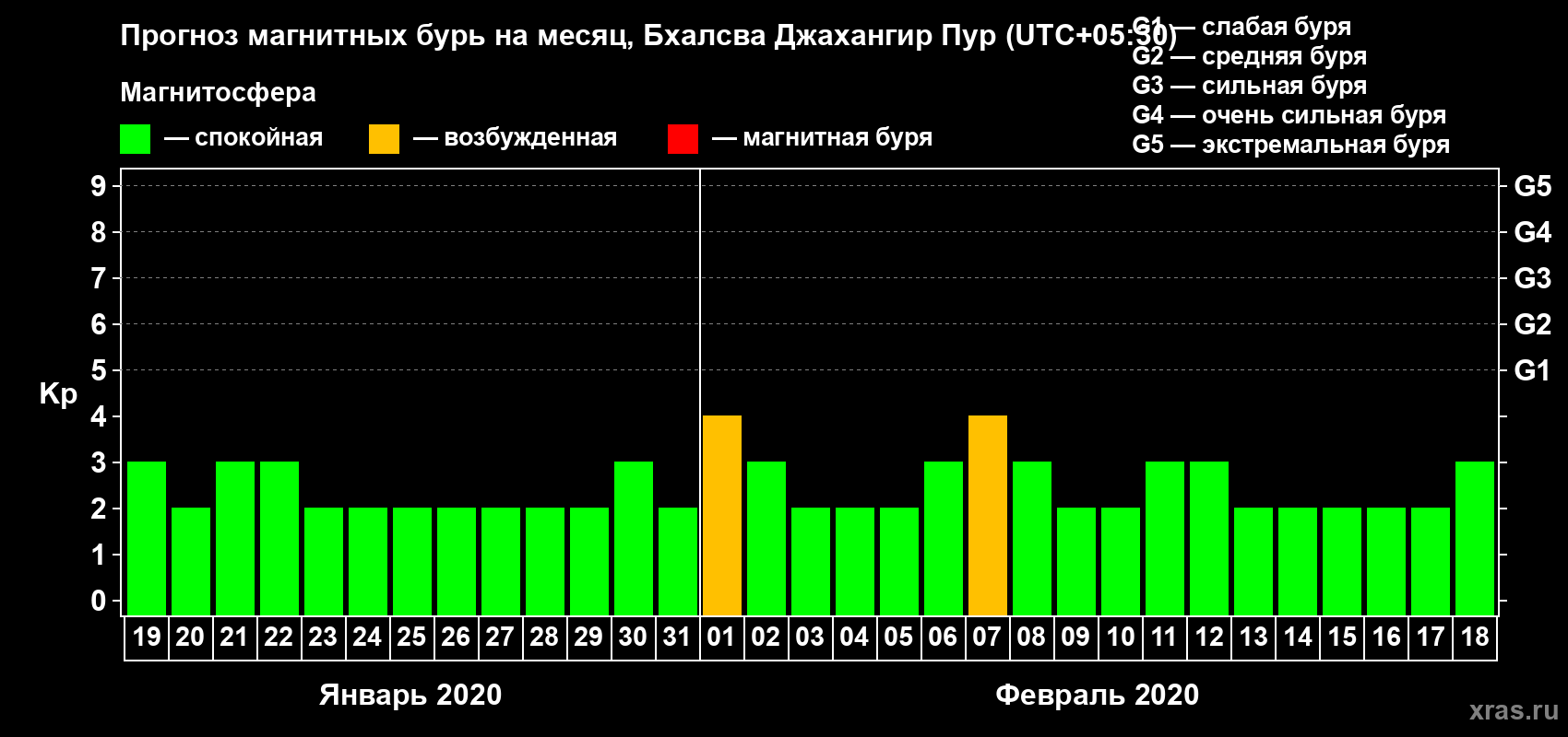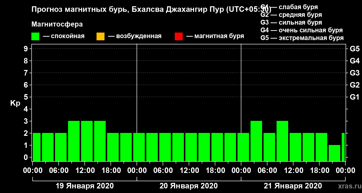 Прогноз магнитных бурь в Бхалсва Джахангир Пуре — 19 января 2020 года