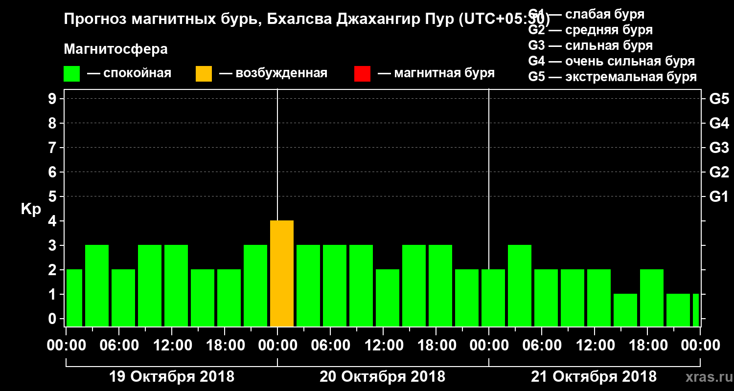 Прогноз магнитных бурь в Бхалсва Джахангир Пуре — 19 октября 2018 года
