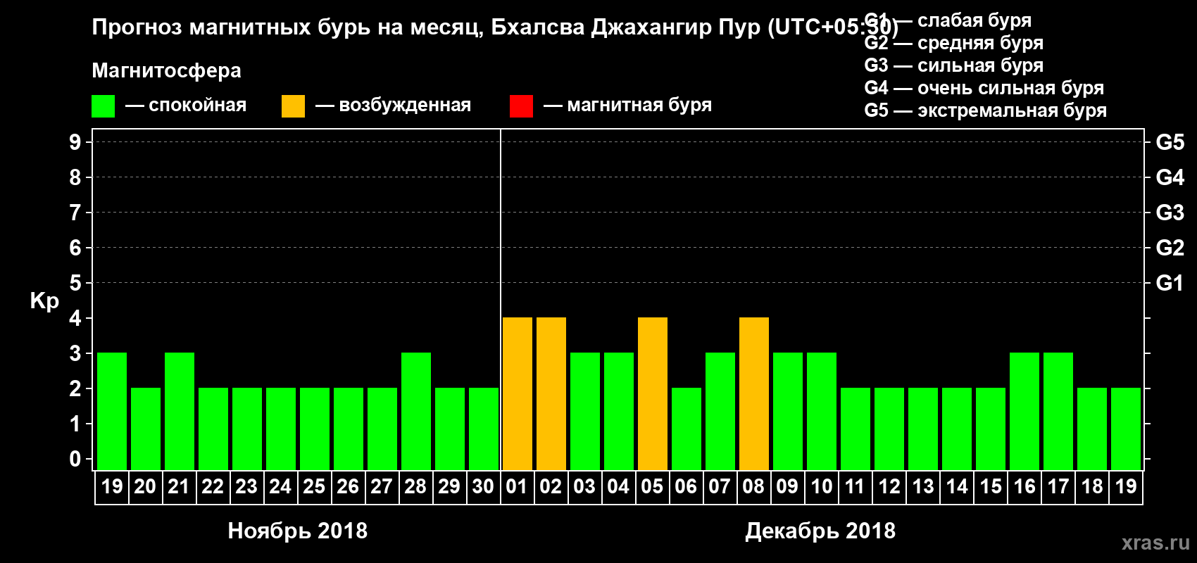Прогноз магнитных бурь в Бхалсва Джахангир Пуре — 19 ноября 2018 года