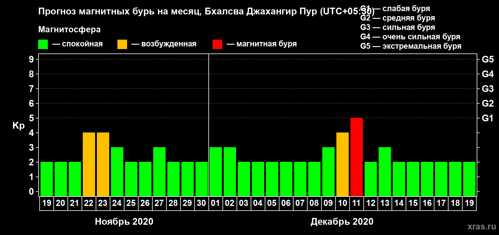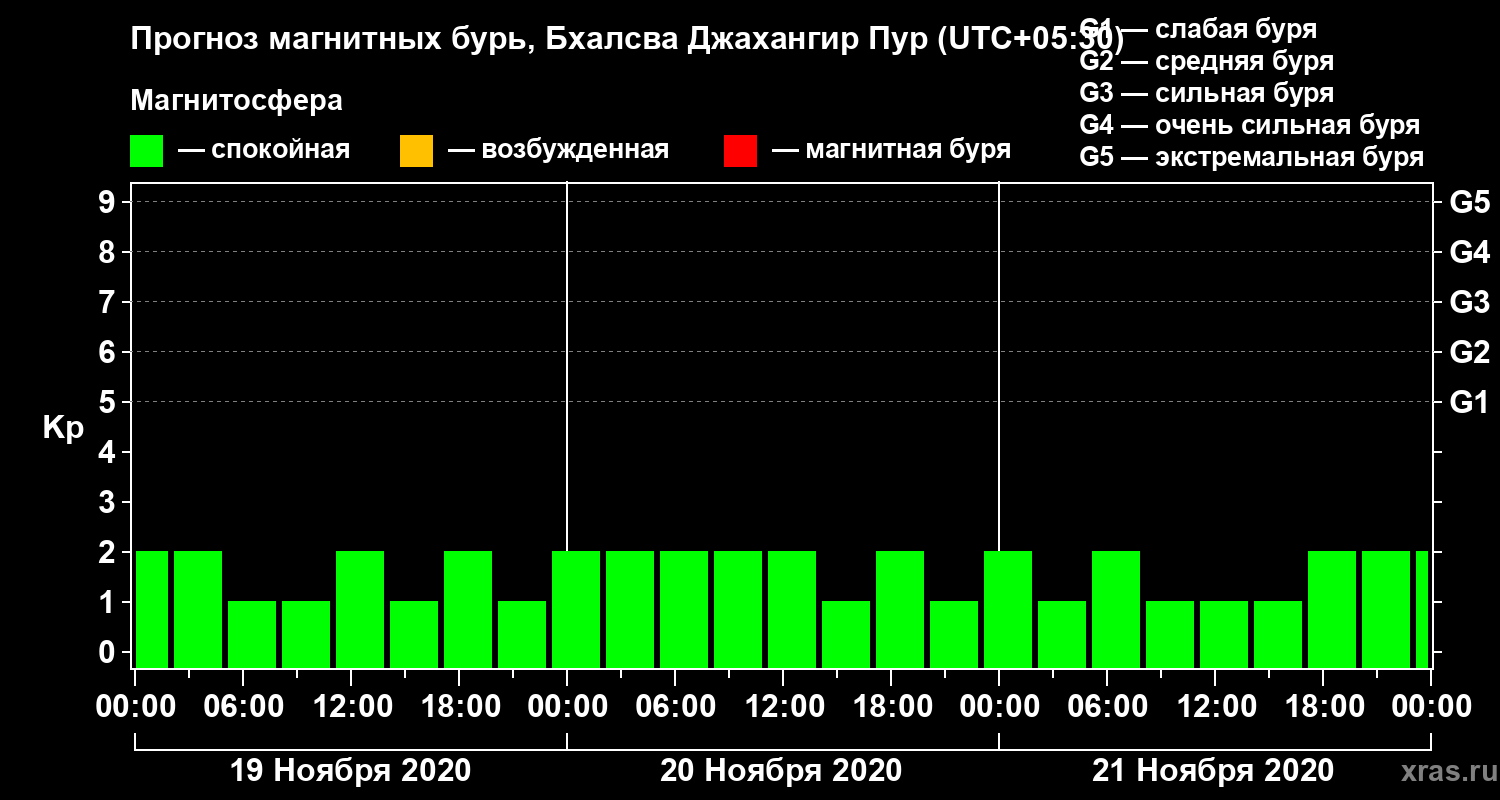 Прогноз магнитных бурь в Бхалсва Джахангир Пуре — 19 ноября 2020 года