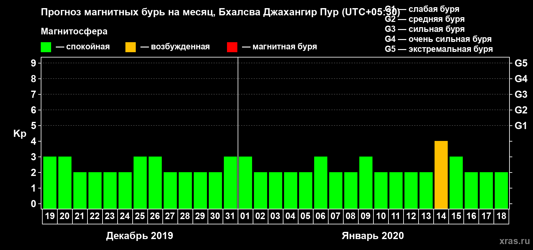 Прогноз магнитных бурь в Бхалсва Джахангир Пуре — 19 декабря 2019 года