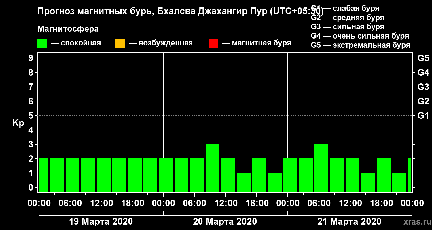 Прогноз магнитных бурь в Бхалсва Джахангир Пуре — 19 марта 2020 года