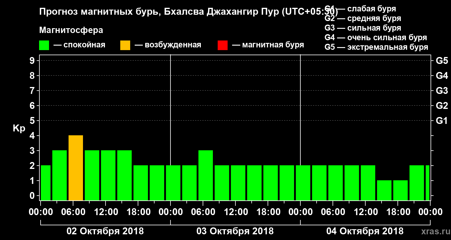 Прогноз магнитных бурь в Бхалсва Джахангир Пуре на 2 октября 2018 года