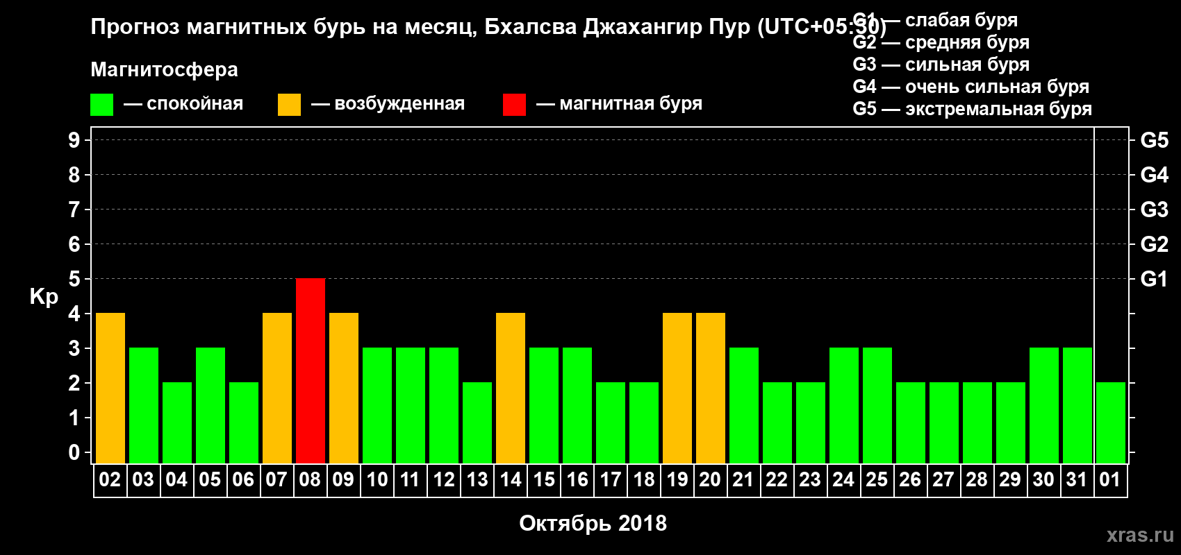 Прогноз магнитных бурь в Бхалсва Джахангир Пуре — 2 октября 2018 года